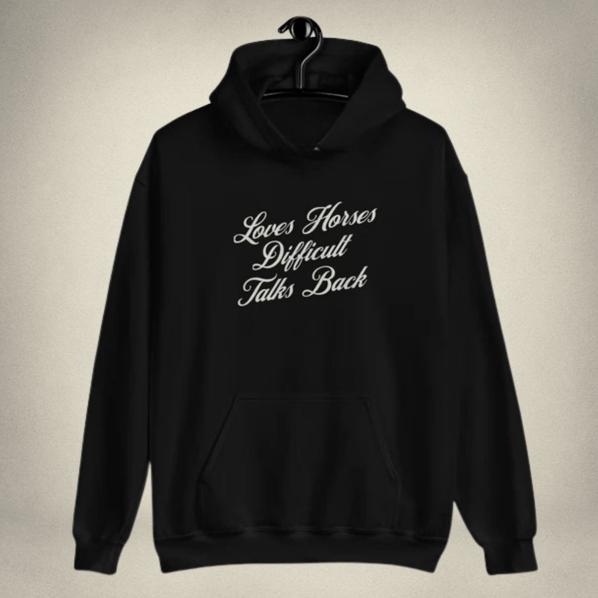 A cheeky western truth in script. Bold, honest, and a little wild, this design captures the spirit of a cowgirl who’s loyal, stubborn in the best way, and never afraid to speak her mind.