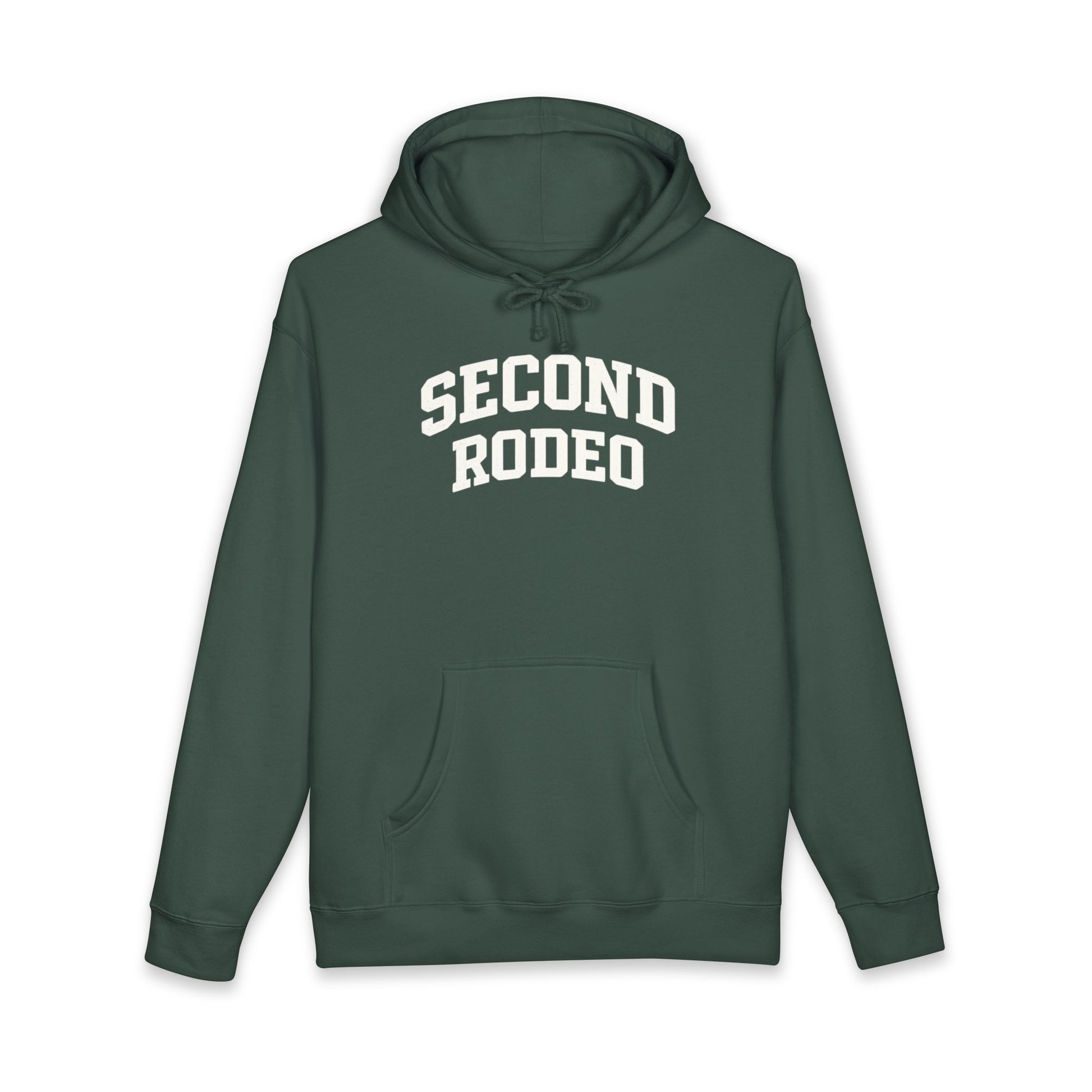 This heavyweight hooded sweatshirt blends rugged comfort with a lived-in, vintage athletic look. The front’s bold “SECOND RODEO” arch gives it a collegiate-cowboy attitude, confident but quietly worn-in. It’s heavy enough to ward off evening chill, with a fleece-lined hood and thick ribbed cuffs that hold their shape through long days outdoors or relaxed evenings by a fire. Wear it layered over a flannel to head out for morning chores, or pulled on after a long weekend on the trail; the roomy cut lets you move freely while keeping you warm. If you live for late rides, woodsmoke mornings, or anything that calls for cozy resilience, this hoodie settles in and feels like part of your routine.
